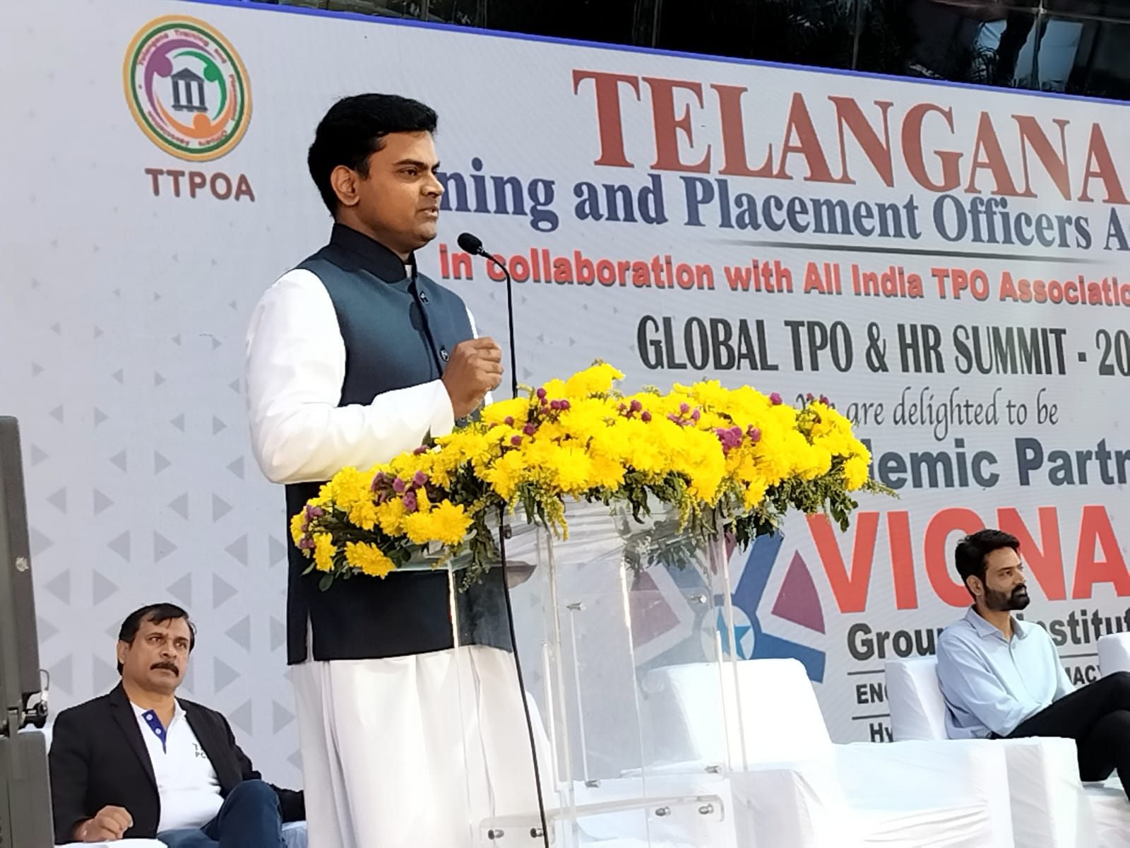 Rev. Fr. Dr. P. Anthony Vinay, Director and Principal of St. Mary’s Centenary College of Management, graced the Global TPO & HR Summit 2025 as the esteemed Special Guest and delivered an inspiring address to the gathering. He commended the Telangana Training & Placement Officers Association for creating a dynamic platform that brought together TPOs from numerous institutions and HR leaders from distinguished companies across the country. In his speech, he highlighted the growing importance of robust industry–academia collaboration to enhance student employability and equip graduates with skills aligned to the evolving demands of the workforce. Rev. Fr. Dr. Vinay emphasized the critical role of Training and Placement Officers in shaping career pathways, bridging skill gaps, and driving innovative training practices within educational institutions. He appreciated the insightful discussions, exchange of best practices, and collaborative spirit that marked the summit. He also applauded the Hackathon held later in the evening, noting that such initiatives inspire creativity, critical thinking, and real-time problem-solving among students. Concluding his address, he encouraged all stakeholders to continue fostering a strong and supportive ecosystem that empowers students, strengthens institutional networks, and contributes to building a future-ready generation of professionals.
