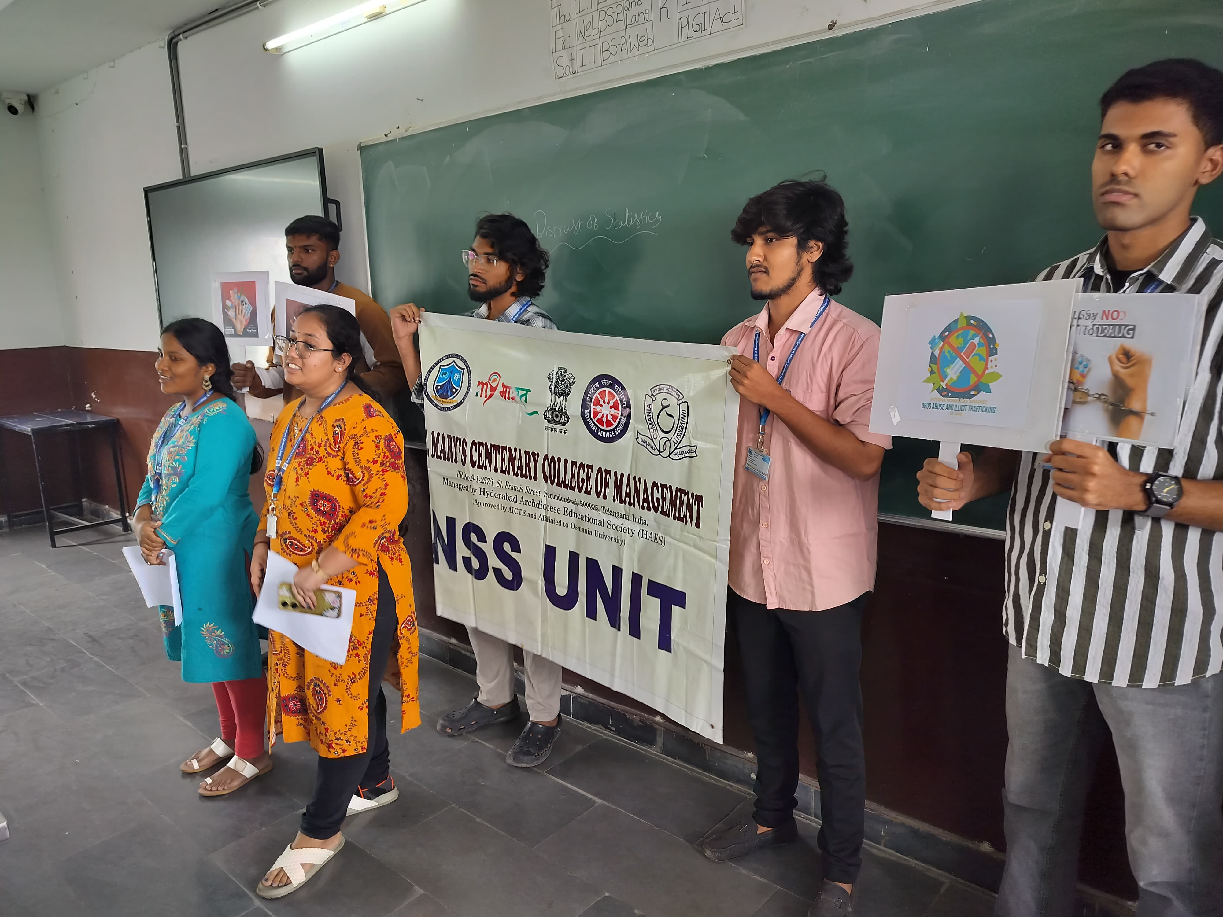 June 26th 2025, St. Mary’s Centenary College of Management (SMCCoM), under the NSS Unit, marked the International Day Against Drug Abuse and Illicit Trafficking with a vibrant and purposeful series of activities to raise awareness and promote a drug-free society. This year’s global theme, “Breaking the Chains: Prevention, Treatment, and Recovery for All!”, was at the heart of the college’s initiative. Events included a rally, essay writing competition, and group discussions—all aimed at educating students and the public on the harmful impact of substance abuse. The awareness rally led by energetic MBA students, where students distributed informational pamphlets and engaged with citizens, urging them to “Say No to Drugs” and help “Build a Brighter Future.” Director and Principal of SMCCoM, stressed the urgent need for youth awareness and participation in combating drug addiction. He encouraged students to become role models and agents of change in society. Back on campus, the essay writing and group discussion competitions gave students a platform to express their insights, propose solutions, and reflect on the theme. These activities fostered critical thinking and encouraged collaborative dialogue among peers. The program was a strong testament to SMCCoM’s dedication to promoting social responsibility and holistic development. The collective efforts of students, faculty, and the NSS Unit made the observance a meaningful and impactful one, reinforcing the college’s commitment to nurturing responsible future leaders.