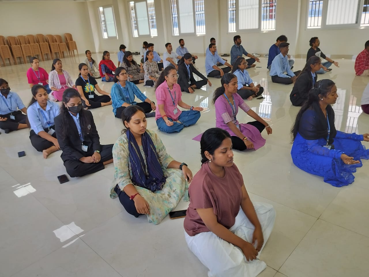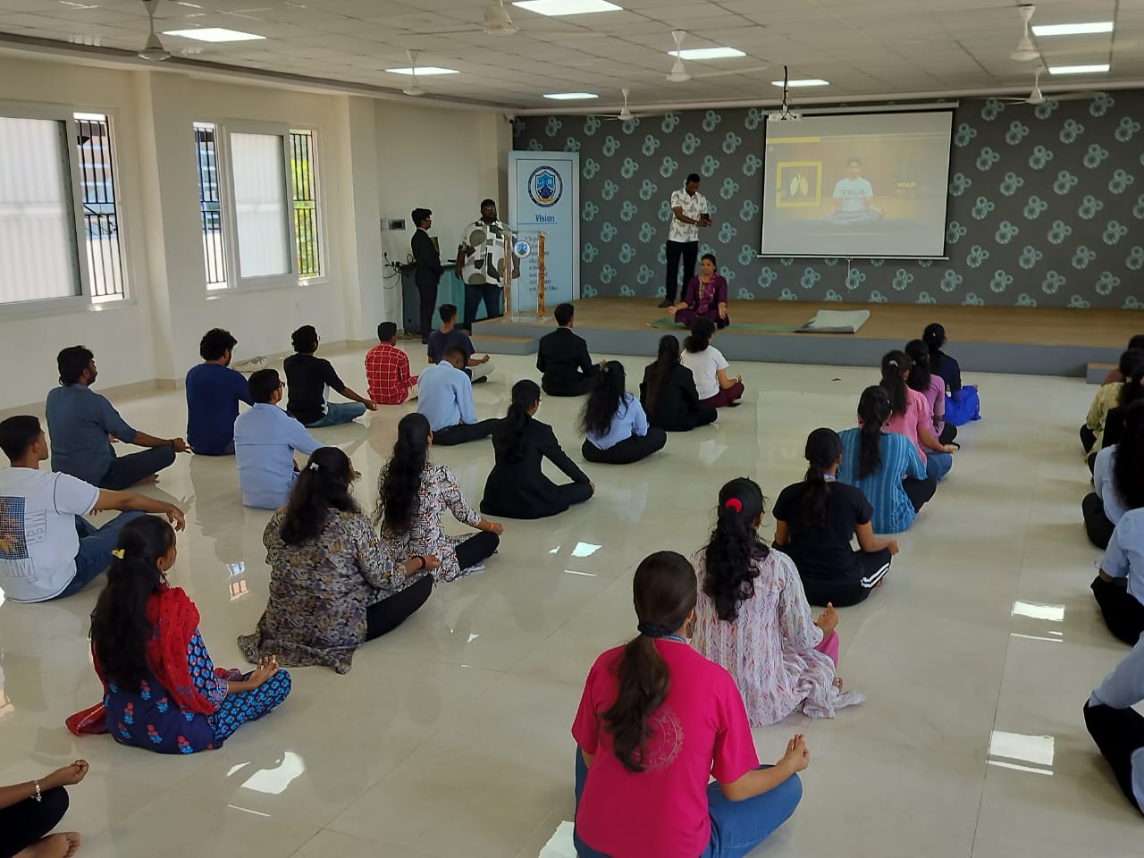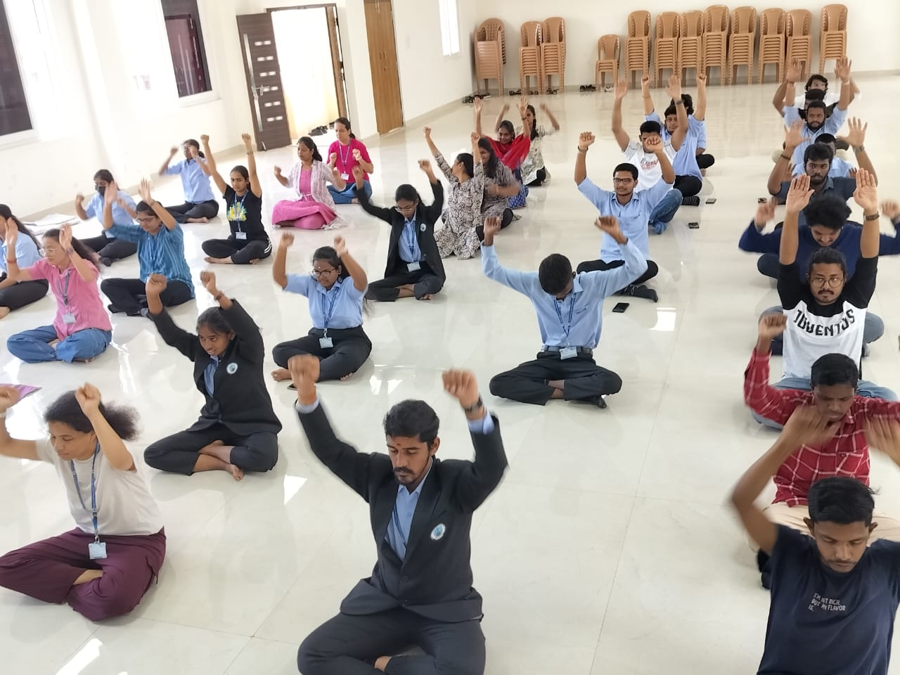 On 21st June 2024, St. Mary’s Centenary College of Management celebrated International Yoga Day with great enthusiasm and spirit, under the theme “Yoga for One Earth, One Health”. The event aimed to raise awareness about the importance of holistic well-being and the power of yoga in harmonizing the body, mind, and soul. The program was organized by the college in collaboration with the National Service Scheme (NSS), and reflected the institution’s commitment towards promoting health, mindfulness, and sustainable living among students and staff. The session began with basic warm-up exercises, followed by a series of yoga postures and breathing techniques guided by experienced trainers. Director and Principal Rev. Fr. Dr. P. Anthony Vinay extended his warm regards and emphasized the relevance of yoga in today's fast-paced world, encouraging everyone to make it a regular part of their lifestyle for improved physical and mental health. The event was a great success, instilling a sense of inner peace and unity, and reinforcing the message that yoga is not just a practice, but a way of life.
