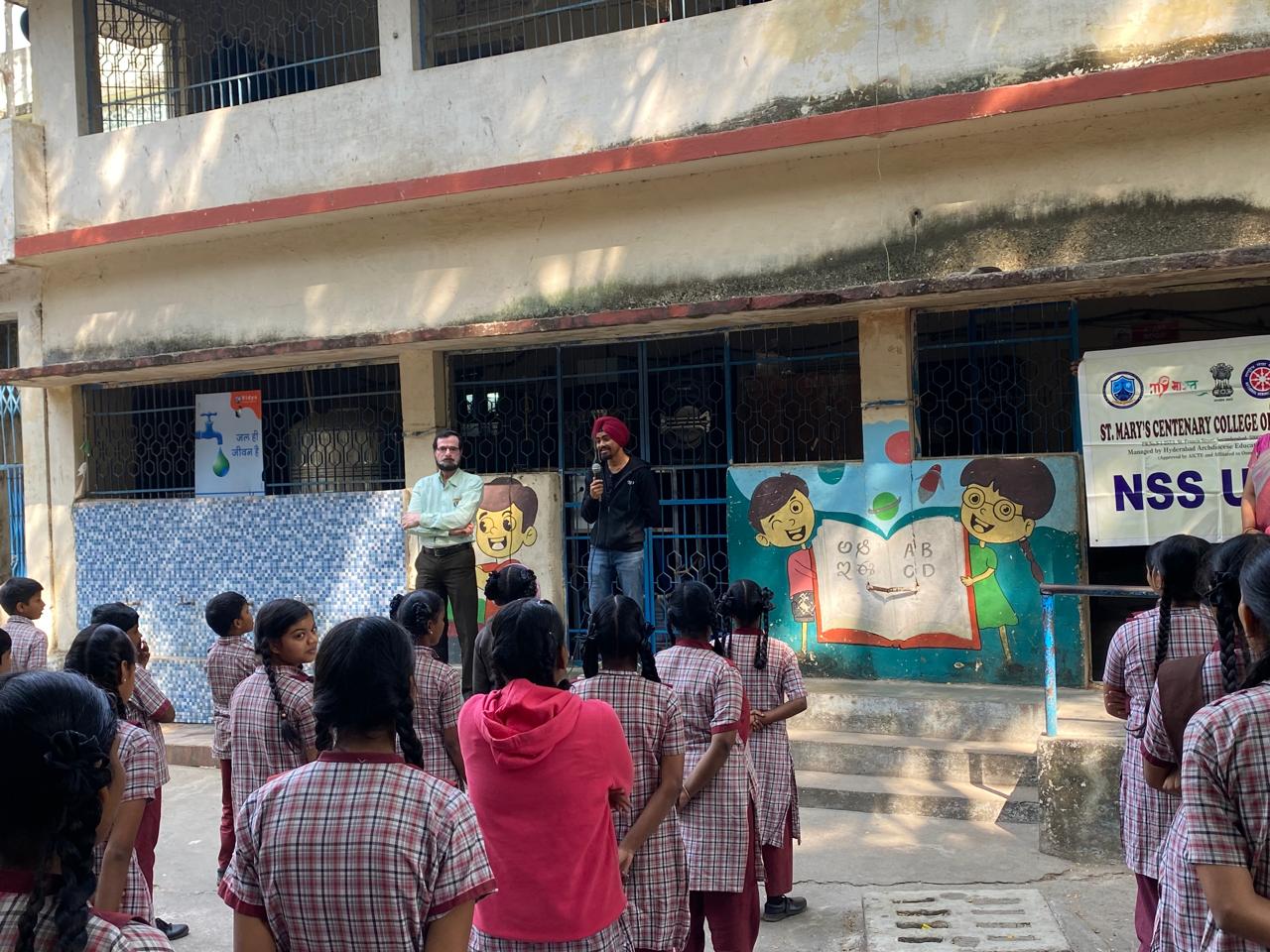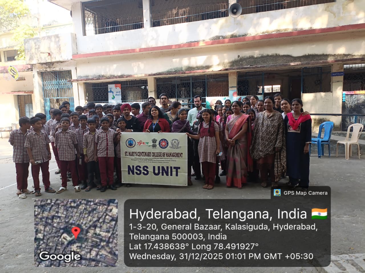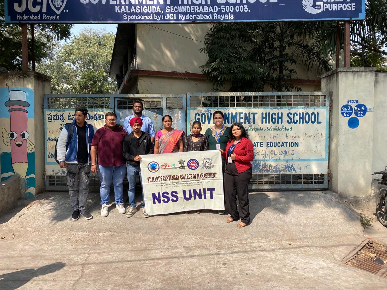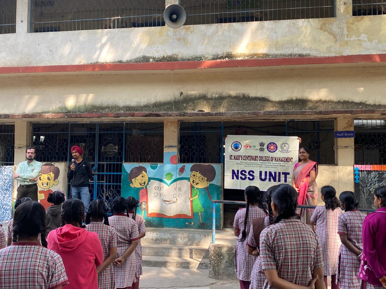 As part of its commitment to social responsibility and community engagement, the NSS Unit of St. Mary’s Centenary College of Management (SMCCoM) organized a Stationery Distribution Drive for Government School Students at Government School, Regimental Bazar on 31 December 2025. The programme witnessed the enthusiastic participation of MBA students, who visited the school and interacted warmly with the students, creating a joyful and encouraging learning environment. The volunteers organized a variety of indoor and outdoor games, including volleyball, musical chairs, and other recreational activities, which brought smiles and excitement among the school children. In addition to the interactive sessions, the MBA students distributed stationery items and refreshments, reinforcing the message that education flourishes when supported with care and encouragement. The initiative aimed at motivating young learners, promoting teamwork, and instilling a sense of social responsibility among management students. The event truly reflected the spirit of NSS with the belief that “Education begins with support”, making the drive a meaningful and memorable experience for both the volunteers and the beneficiaries.