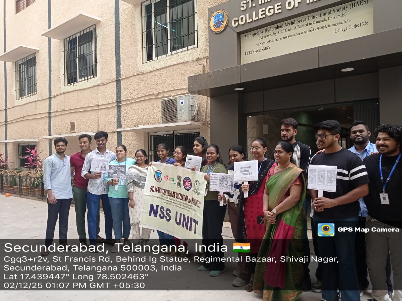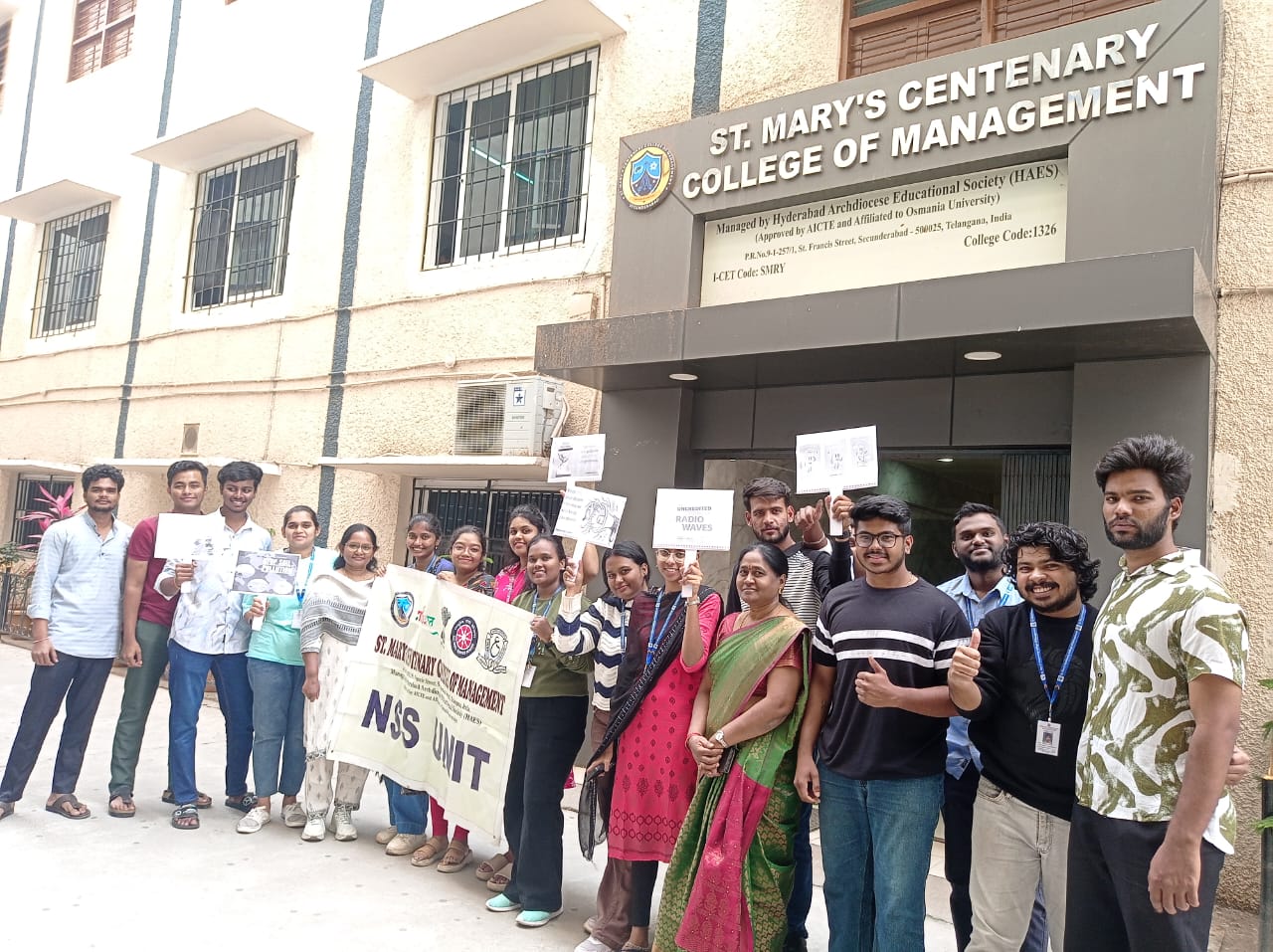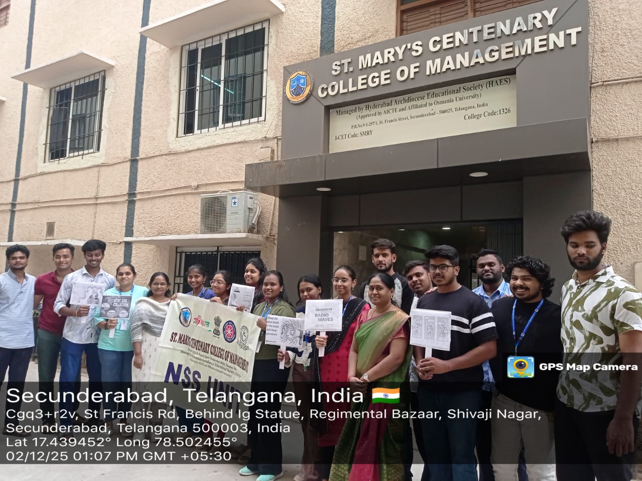 St. Mary’s Centenary College of Management observed National Pollution Control Day on 2nd December 2025 to raise awareness about the harmful effects of pollution and to honor the lives lost in the 1984 Bhopal Gas Tragedy. Organized by the IIC Cell and NSS Unit, the event encouraged students to take responsibility for environmental protection. As part of the program, students actively participated in an awareness rally around the surrounding areas of the campus. Carrying placards and slogans such as “Stop pollution before it stops you,” they spread messages on reducing air, water, and land pollution. Volunteers also interacted with the public, highlighting sustainable habits like avoiding plastic, proper waste disposal, and maintaining cleanliness. The initiative successfully instilled a sense of environmental consciousness among participants and strengthened the college’s commitment to promoting a cleaner and healthier society.