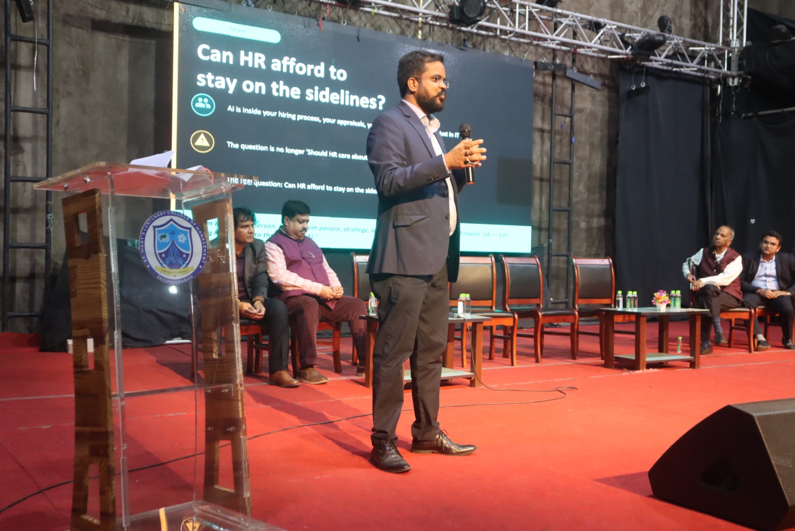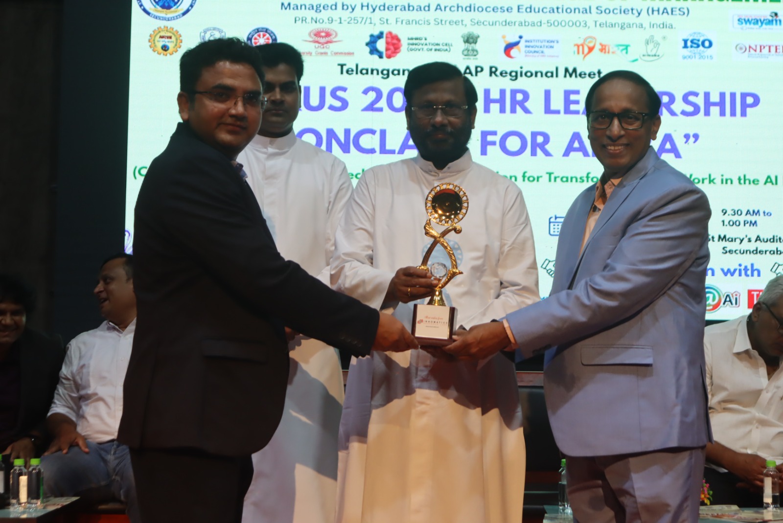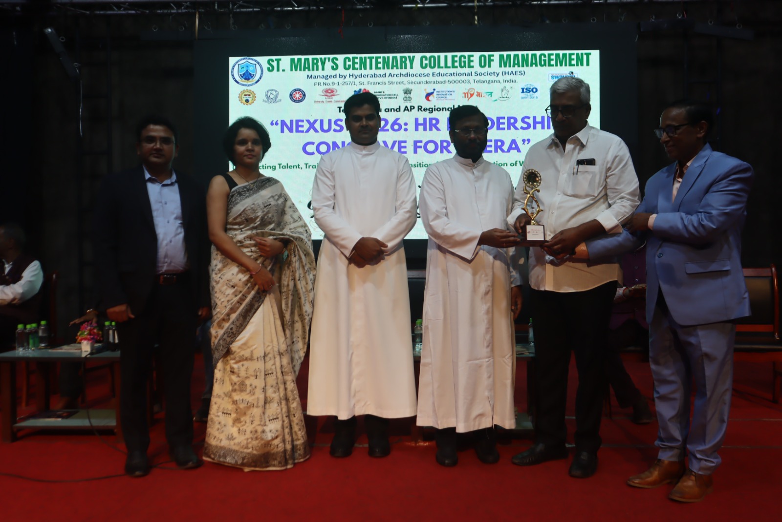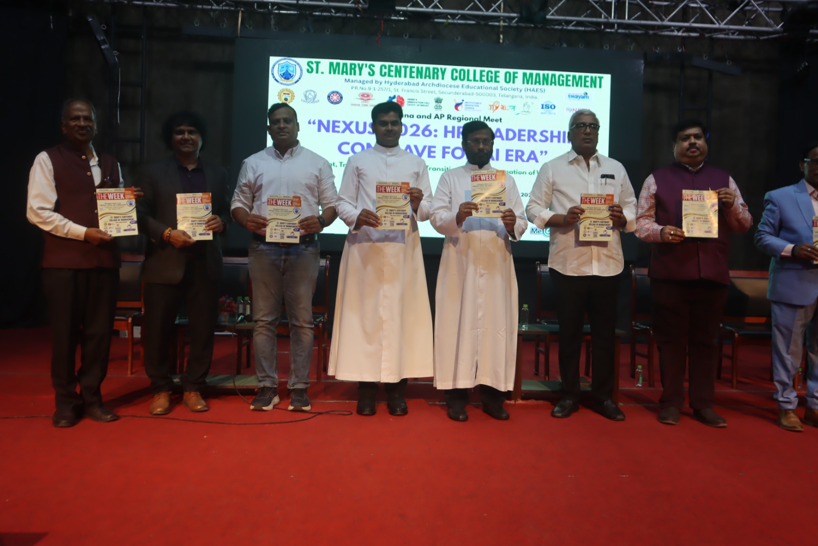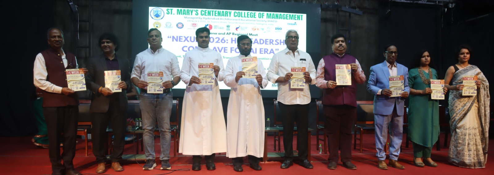 St. Mary’s Centenary College of Management, Secunderabad, successfully organized the Telangana & AP Regional Meet – “NEXUS 2026: HR Leadership Conclave for AI Era” on 11th April 2026 at St. Mary’s Auditorium. The conclave brought together industry experts, HR leaders, academicians, and students to explore the evolving landscape of Human Resource Management in the age of Artificial Intelligence. Centered around the theme “Connecting Talent, Training, Technology & Transition for Transformation of Work in the AI Era,” the programme aimed to bridge the gap between academia and industry while equipping students with insights into future-ready HR practices. The event witnessed the participation of over 100 HR leaders from reputed organizations across Telangana and Andhra Pradesh, along with 200+ students and faculty members. The presence of distinguished dignitaries, including Msgr. Yeruva Bala Showry, Vice-Chairman of HAES, added significance to the inaugural session, which emphasized the importance of adapting to AI-driven transformations in the corporate world. A key highlight of the conclave was the HR Leadership Panel Discussion featuring eminent professionals such as Dr. Maddela Goud Ramchander, Amit Kumar Soni, Karuna Vempala, Mr. Mario David, and Amrrutha. The panel shared valuable insights on AI-driven recruitment, talent management, HR analytics, future workforce skills, and organizational transformation. The interactive session provided participants with practical exposure to current industry trends and challenges. The programme also featured a distinguished virtual session by Prof. T. V. Rao, a pioneer in HRD, who spoke on the “LION Competency Model for AI Era.” His session highlighted the importance of competency development, leadership transformation, and strategic HR practices in shaping future organizations. The conclave was conducted in collaboration with TTPoA, Digital HR Leadership Academy (DHRLA 5.0), Me@AI, and THE WEEK, which significantly enhanced the reach and impact of the programme. NEXUS 2026 provided participants with a deeper understanding of AI integration in HR, strengthened industry-academia relationships, and encouraged innovation and strategic thinking among students. The event also created awareness about emerging career opportunities in the HR domain. The programme concluded on a successful note, reaffirming the institution’s commitment to fostering knowledge exchange and preparing students to meet the dynamic demands of the modern workforce.